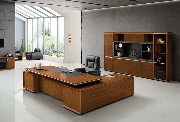 实木班台选用中、高纤维板为基材;贴面常用胡桃木、樱桃木、柚木、榉木、桃花芯木等木皮的大班台,通常称之为实木大班台。
